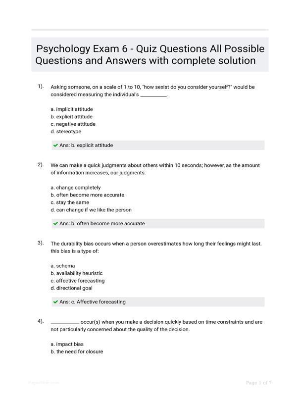 PSYCHOLOGY EXAM 6 - QUIZ QUESTIONS ALL POSSIBLE QUESTIONS AND... $22.00 Add to Cart