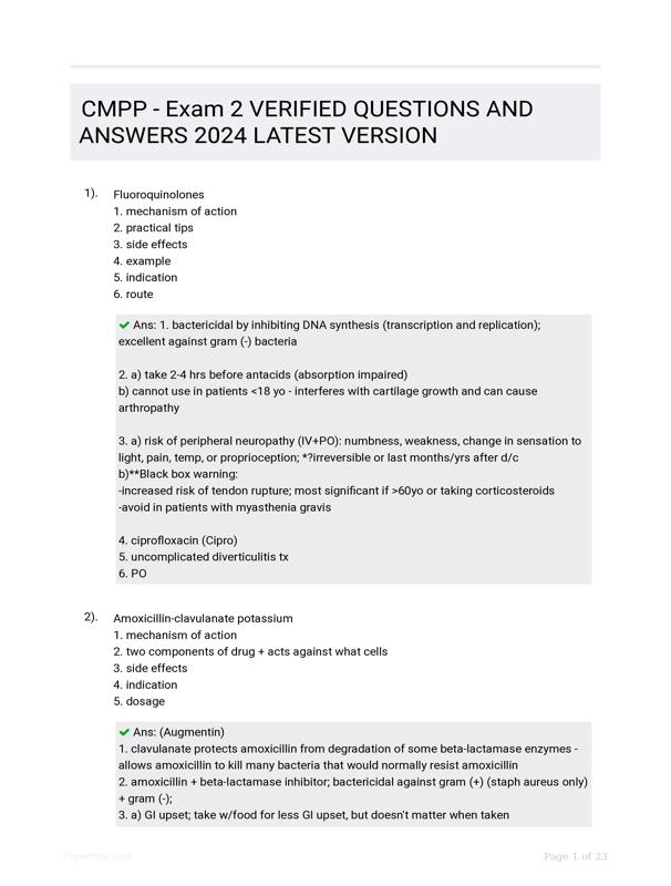 CMPP - EXAM 2 VERIFIED QUESTIONS AND ANSWERS 2024 LATEST VERSION $26.75 Add to Cart