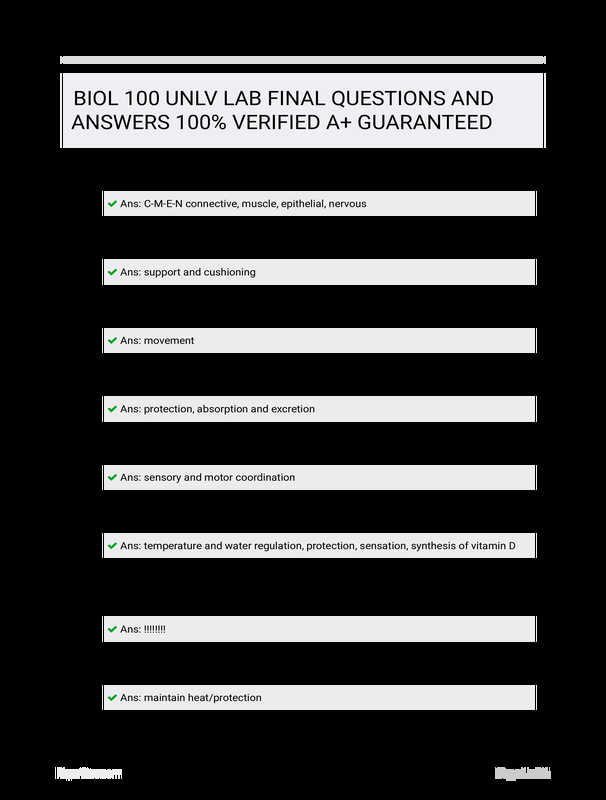BIOL 100 UNLV LAB FINAL QUESTIONS AND ANSWERS 100% VERIFIED... $20.50 Add to Cart