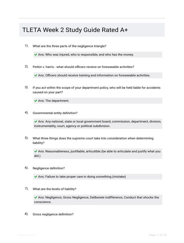TLETA WEEK 2 STUDY GUIDE RATED A+ $14.00 Add to Cart