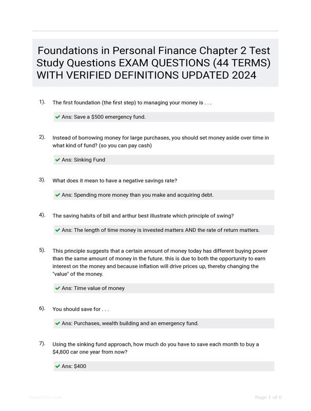 FOUNDATIONS IN PERSONAL FINANCE CHAPTER 2 TEST STUDY... $20.50 Add to Cart