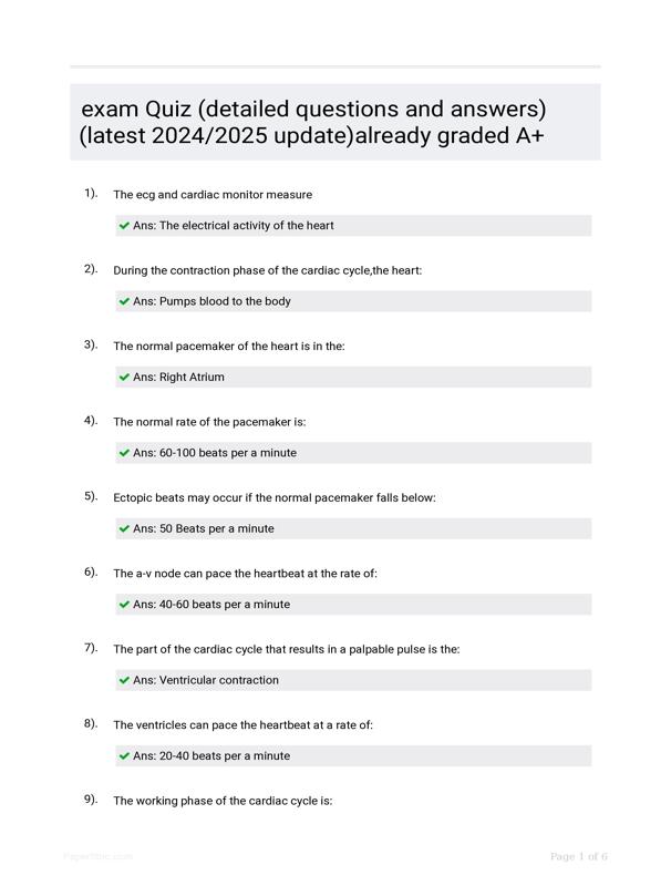 EXAM QUIZ (DETAILED QUESTIONS AND ANSWERS)(LATEST 2024/2025... $20.50 Add to Cart