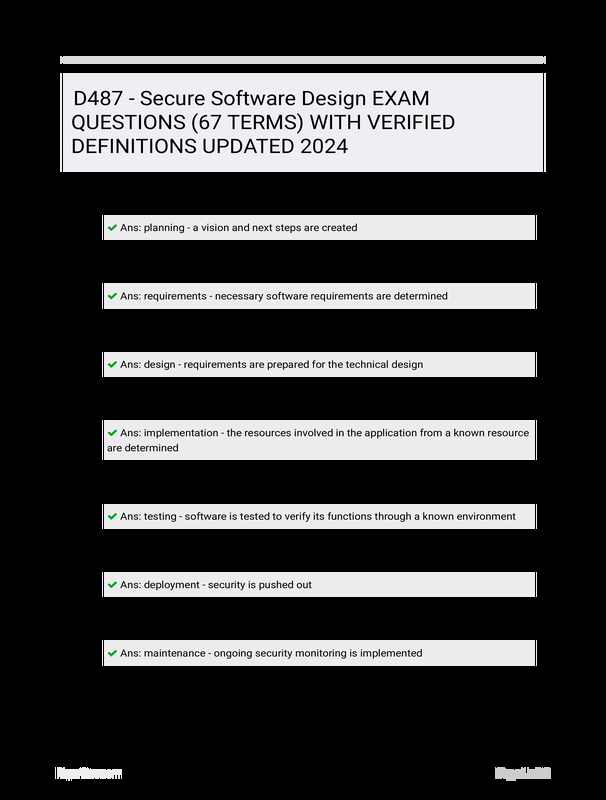 D487 - SECURE SOFTWARE DESIGN EXAM QUESTIONS (67 TERMS) WITH... $22.00 Add to Cart