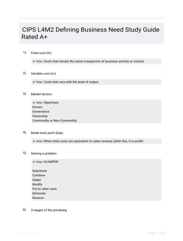 CIPS L4M2 DEFINING BUSINESS NEED STUDY GUIDE RATED A+ $22.00 Add to Cart
