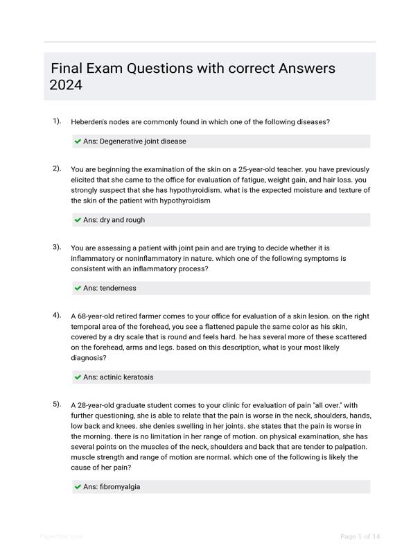 FINAL EXAM QUESTIONS WITH CORRECT ANSWERS 2024 $14.00 Add to Cart
