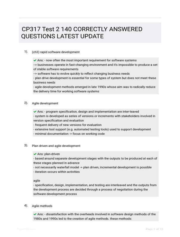 CP317 TEST 2 140 CORRECTLY ANSWERED QUESTIONS LATEST UPDATE $27.00 Add to Cart