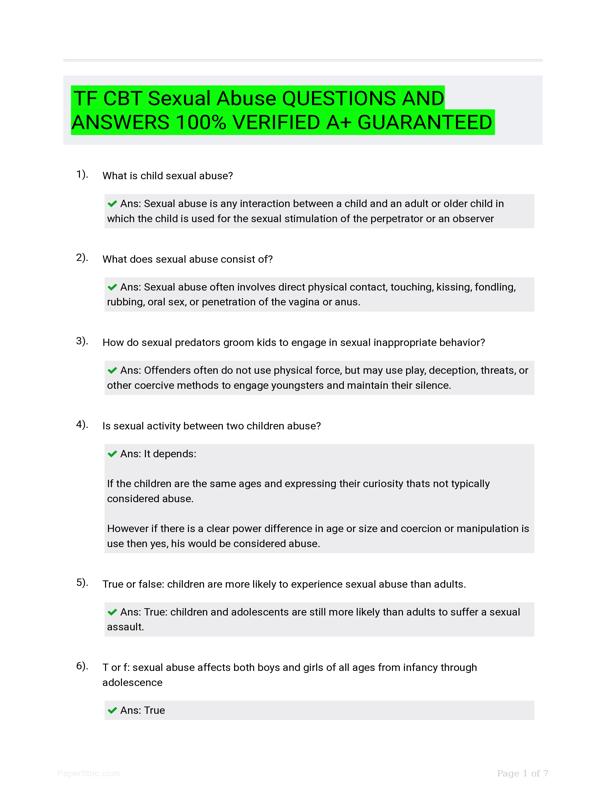 TF CBT SEXUAL ABUSE QUESTIONS AND ANSWERS 100% VERIFIED A+ GUARANTEED $22.00 Add to Cart