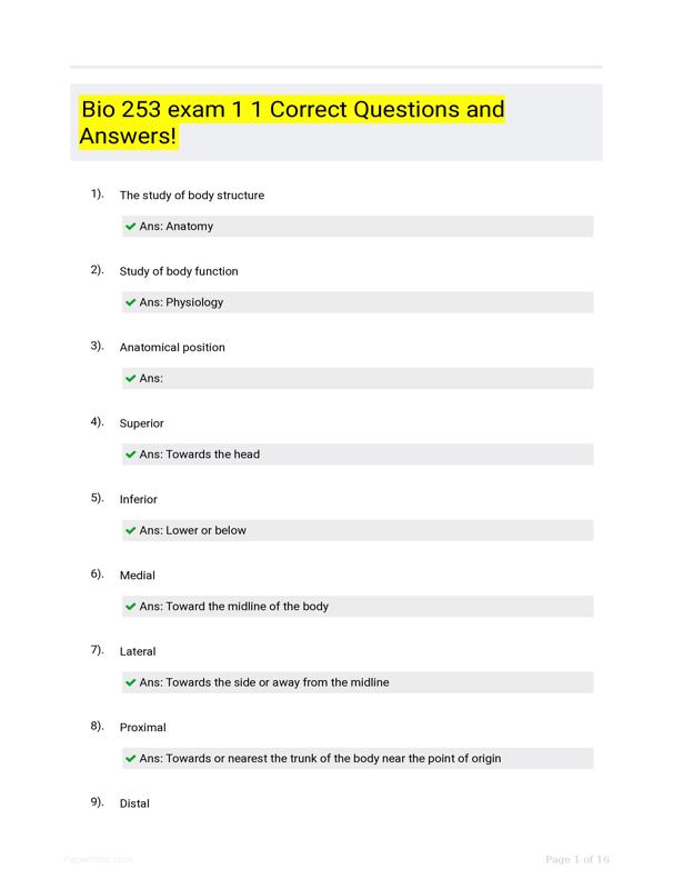BIO 253 EXAM 1 1 CORRECT QUESTIONS AND ANSWERS! $24.00 Add to Cart