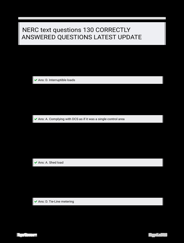 NERC TEXT QUESTIONS 130 CORRECTLY ANSWERED QUESTIONS LATEST UPDATE $27.00 Add to Cart