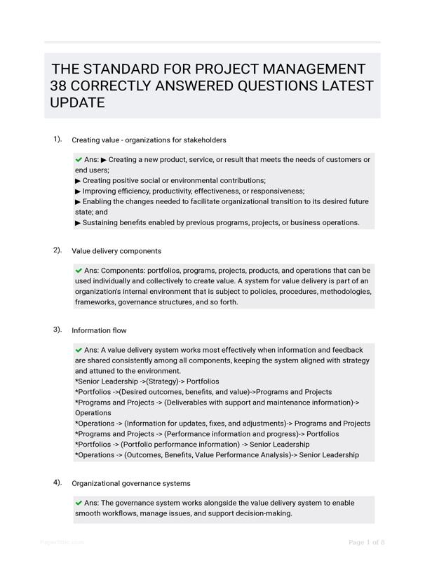 THE STANDARD FOR PROJECT MANAGEMENT 38 CORRECTLY ANSWERED QUESTI ... $11.00 Add to Cart