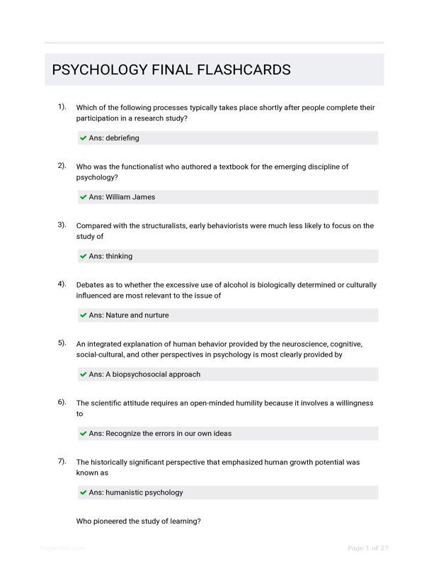 PSYCHOLOGY FINAL FLASHCARDS $15.00 Add to Cart