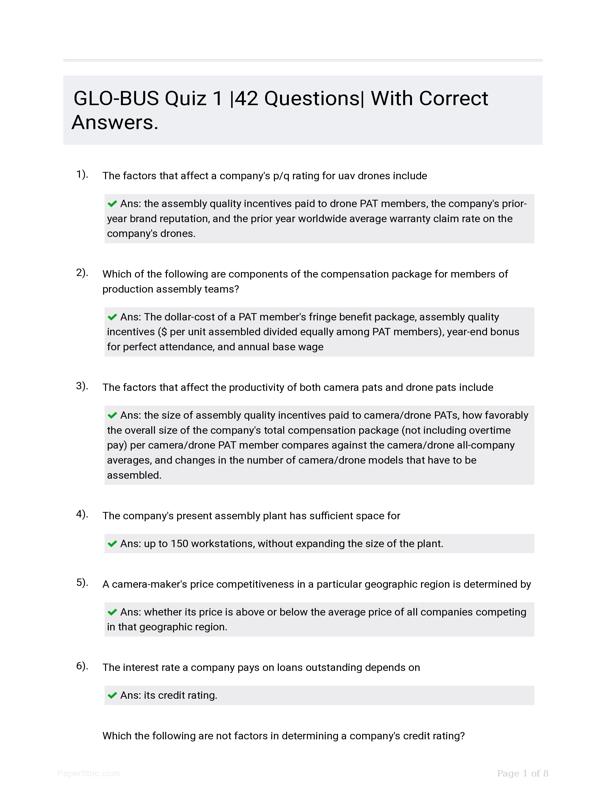 GLO-BUS QUIZ 1 |42 QUESTIONS| WITH CORRECT ANSWERS. $11.00 Add to Cart