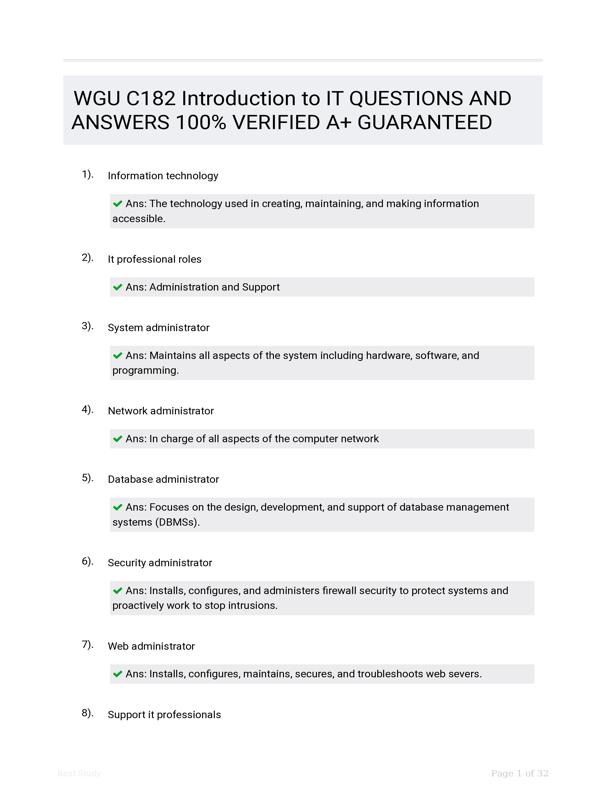 WGU C182 INTRODUCTION TO IT QUESTIONS AND ANSWERS 100% VERIFIED A ... $15.00 Add to Cart