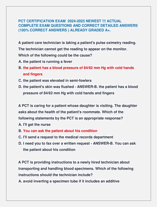 PCT CERTIFICATION EXAM 2024-2025 NEWEST !!! ACTUAL COMPLETE EXAM ... $15.00 Add to Cart
