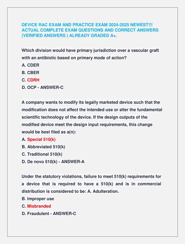 DEVICE RAC EXAM AND PRACTICE EXAM 2024-2025 NEWEST!!! ACTUAL... $21.00 Add to Cart