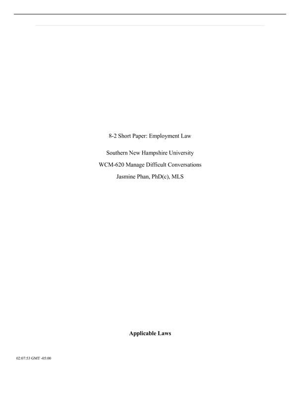 8-2 SHORT PAPER: EMPLOYMENT LAWSOUTHERN NEW HAMPSHIRE UNIVER $8.00 Add to Cart