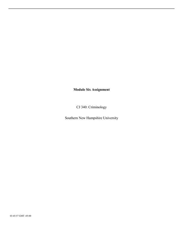 MODULE SIX ASSIGNMENTCJ 340: CRIMINOLOGY SOUTHERN NEW HAMPSH $8.00 Add to Cart
