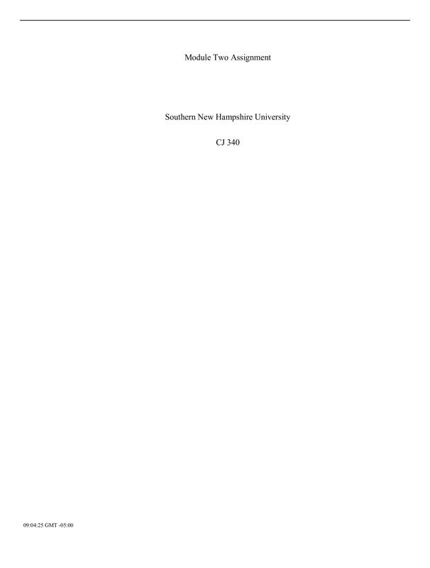 MODULE TWO ASSIGNMENTSOUTHERN NEW HAMPSHIRE UNIVERSITYCJ 340 $8.00 Add to Cart