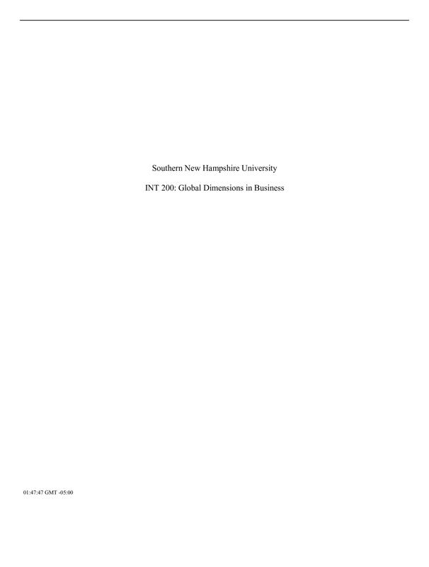 SOUTHERN NEW HAMPSHIRE UNIVERSITY INT 200: GLOBAL DIMENSIONS $8.00 Add to Cart