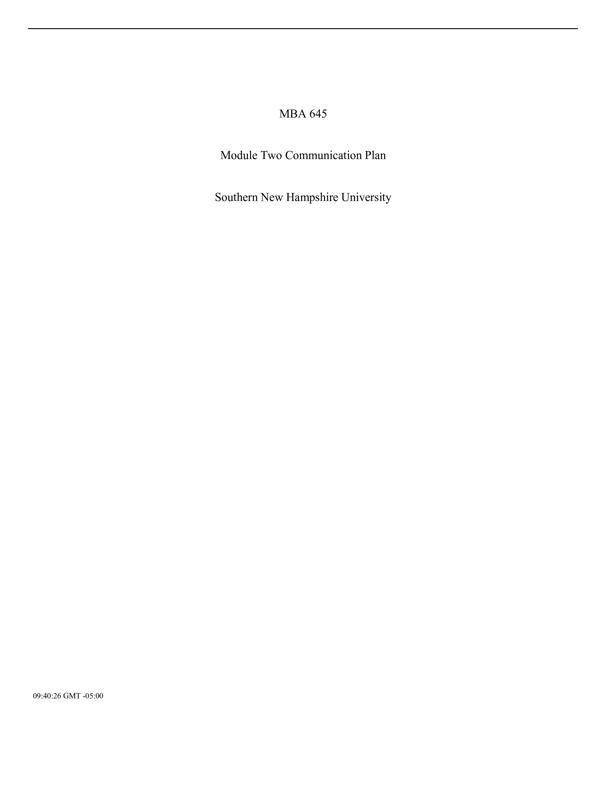 MBA 645MODULE TWO COMMUNICATION PLAN SOUTHERN NEW HAMPSHIRE $8.00 Add to Cart
