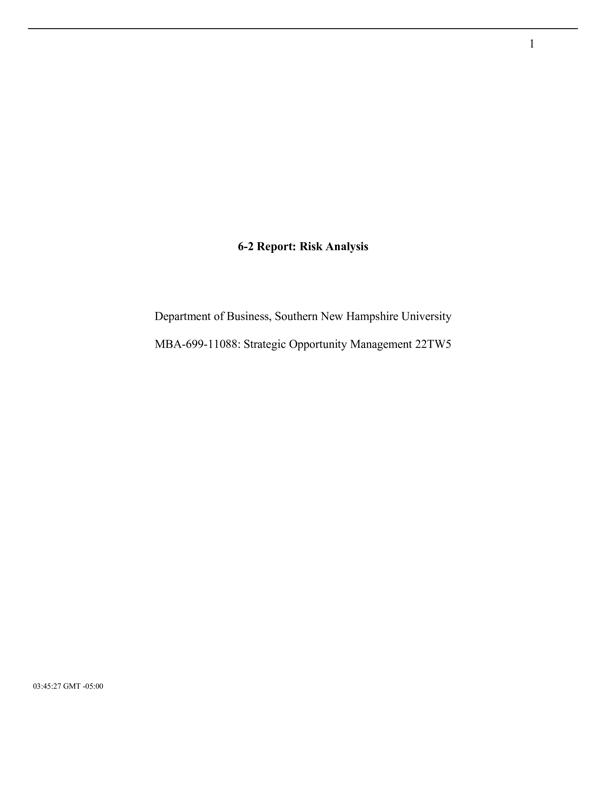 16-2 REPORT: RISK ANALYSISDEPARTMENT OF BUSINESS, SOUTHERN N $8.00 Add to Cart