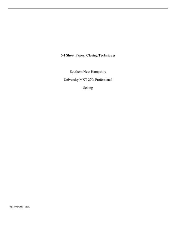 6-1 SHORT PAPER: CLOSING TECHNIQUESSOUTHERN NEW HAMPSHIRE UN $8.00 Add to Cart