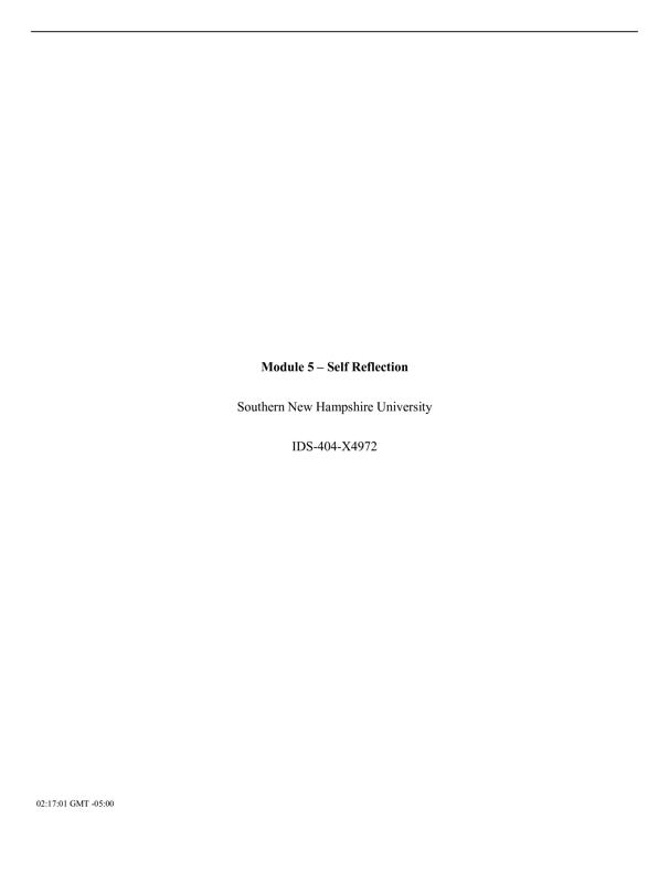 MODULE 5 SELF REFLECTIONSOUTHERN NEW HAMPSHIRE UNIVERSIT $8.00 Add to Cart