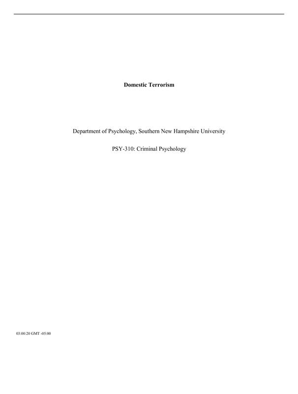 DOMESTIC TERRORISMDEPARTMENT OF PSYCHOLOGY, SOUTHERN NEW HAM $8.00 Add to Cart