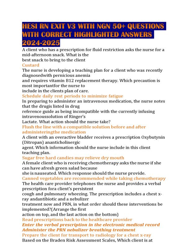 HESI RN EXIT V3 WITH NGN 50+ QUESTIONS WITH CORRECT HIGHLIGHTED A ... $17.00 Add to Cart