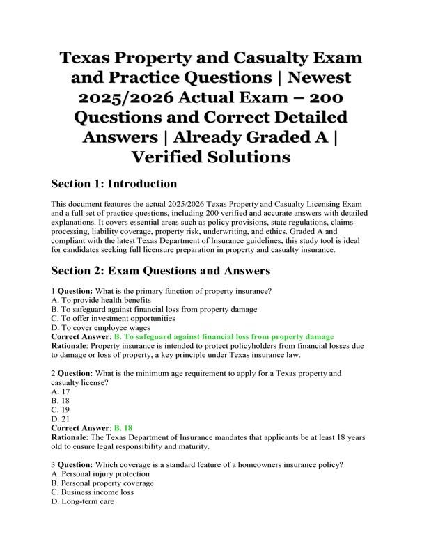 TEXAS PROPERTY AND CASUALTY EXAM AND PRACTICE QUESTIONS | 200... $16.50 Add to Cart