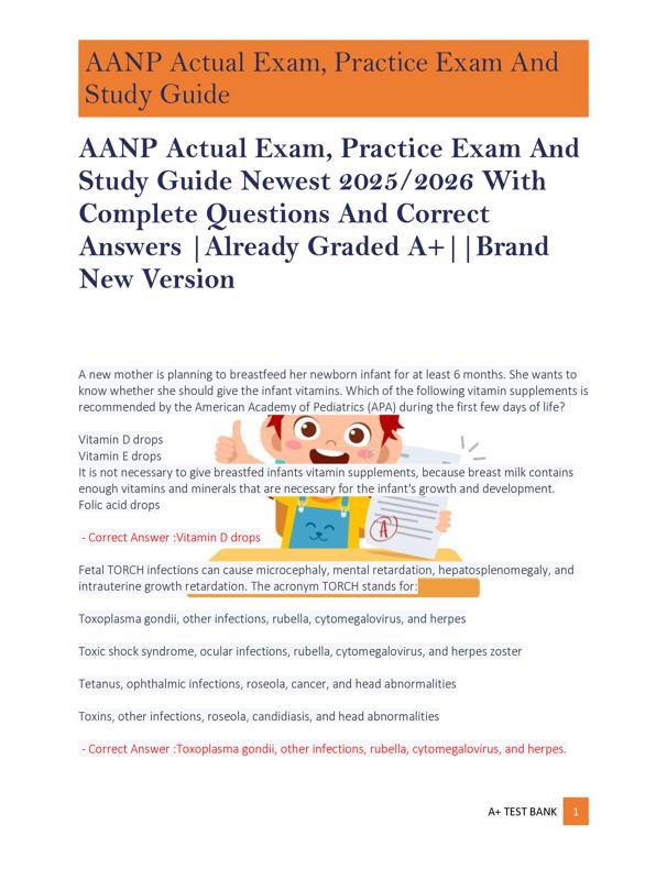 AANP ACTUAL EXAM, PRACTICE EXAM AND STUDY GUIDE NEWEST 2025/2026 ... $10.00 Add to Cart