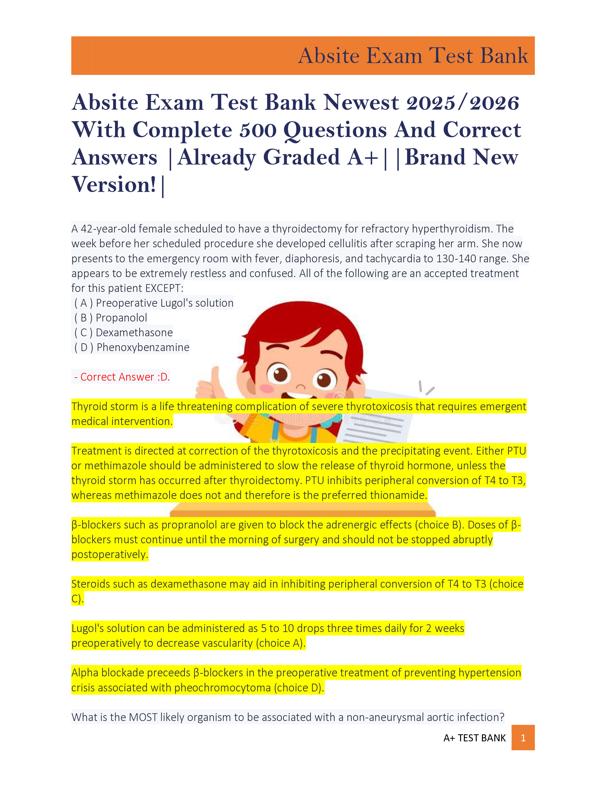 ABSITE EXAM TEST BANK NEWEST 2025/2026 WITH COMPLETE 500 QUESTIO ... $10.00 Add to Cart