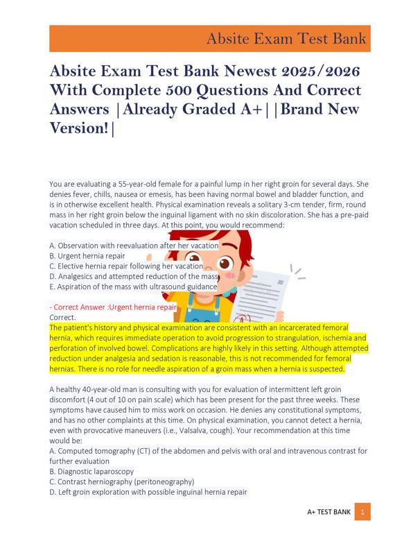 ABSITE EXAM TEST BANK NEWEST 2025/2026 WITH COMPLETE 500... $10.00 Add to Cart