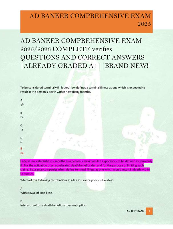 AD BANKER COMPREHENSIVE EXAM 2025/2026 COMPLETE VERIFIES QUESTI ... $10.00 Add to Cart