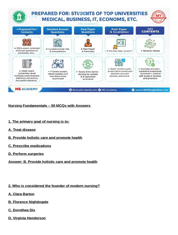 NURSING FUNDAMENTALS – 50 MCQS WITH ANSWERS $10.00 Add to Cart