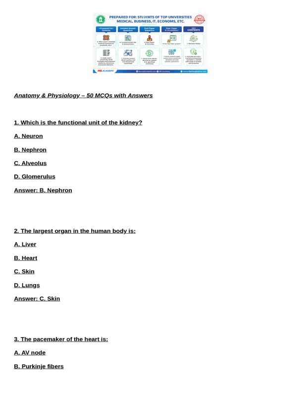 ANATOMY & PHYSIOLOGY – 50 MCQS WITH ANSWERS $10.00 Add to Cart
