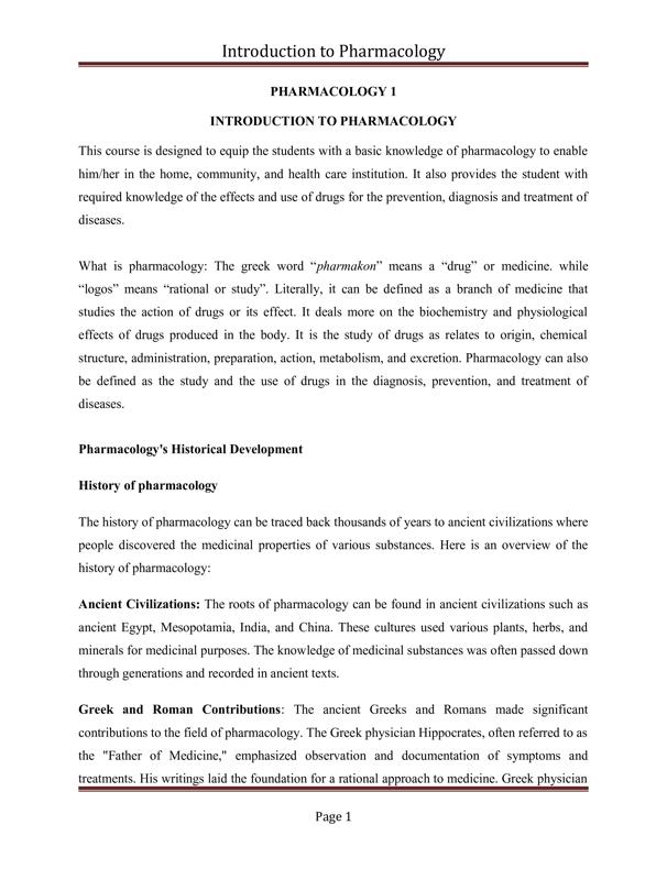 INTRODUCTION TO PHARMACOLOGY – NURSING LECTURE NOTES (DETAI ... $9.00 Add to Cart
